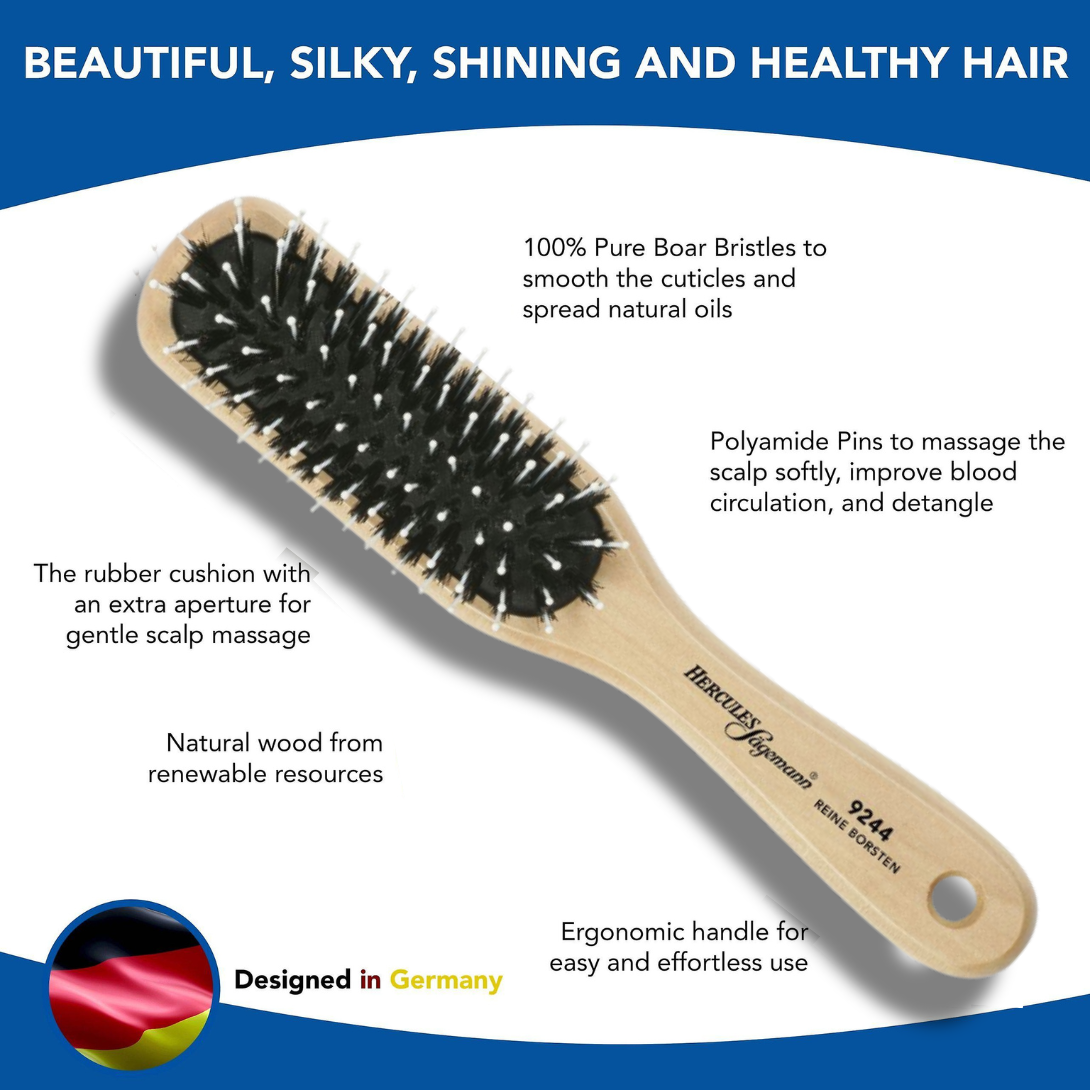 Choisissez la brosse plate Hercules Sägemann 9044 ou 9244 – élégante, durable et efficace pour un coiffage soigné et professionnel.