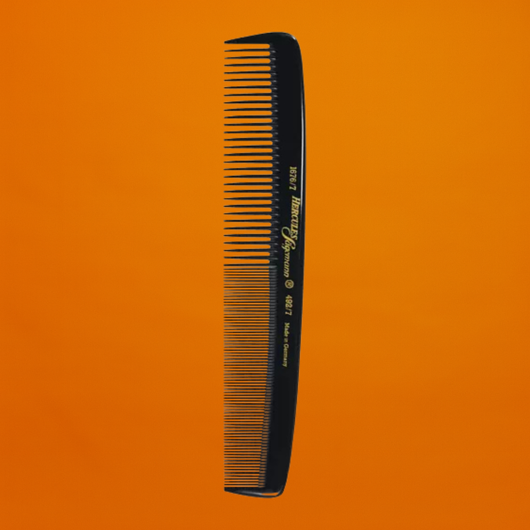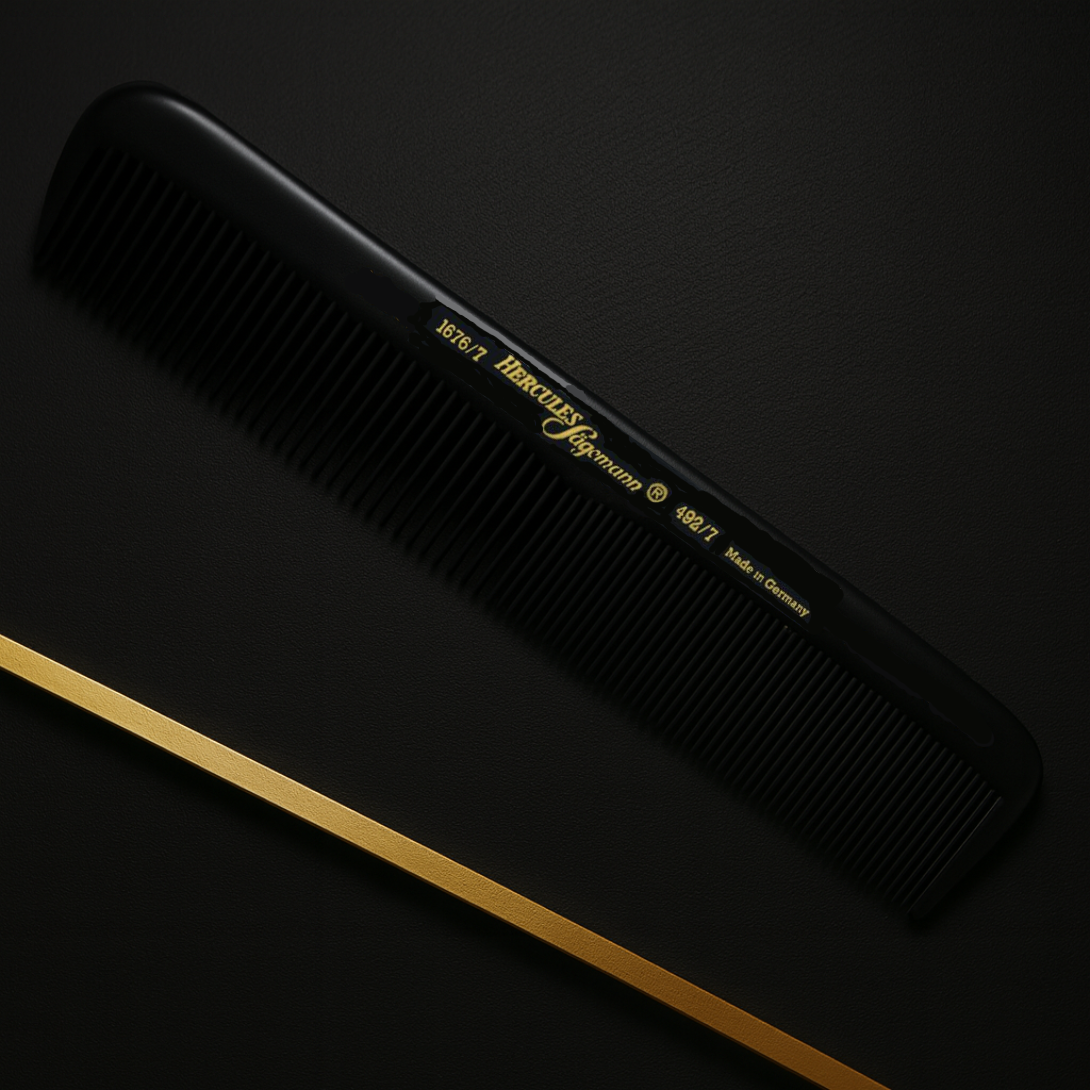 Découvrez la gamme premium de peignes de poche signés Hercules Sägemann : le modèle homme 610-310 (6" / 15,2 cm) et les modèles femme 603-330 (7½" / 19,1 cm), 1676-492 (7" / 18 cm) et 631-445 (7" / 17,8 cm). Chaque peigne est finement travaillé à la main en ébonite durable, offrant une performance antistatique, une glisse fluide et une précision digne du salon dans un format compact et facile à transporter.
