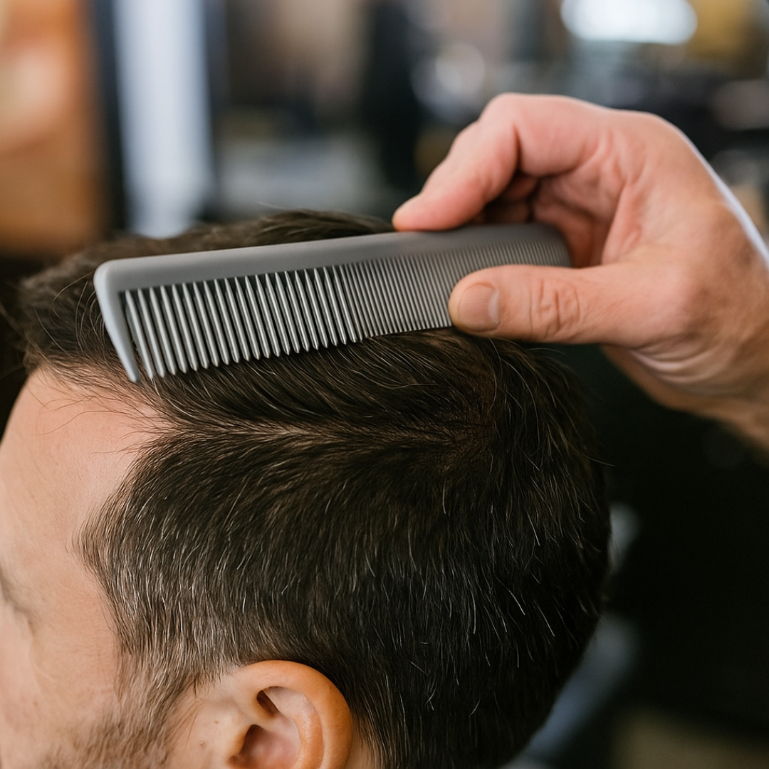 - Tenez fermement le peigne pour le guider avec une pression régulière, afin d'obtenir des coupes précises aux ciseaux ou à la tondeuse.