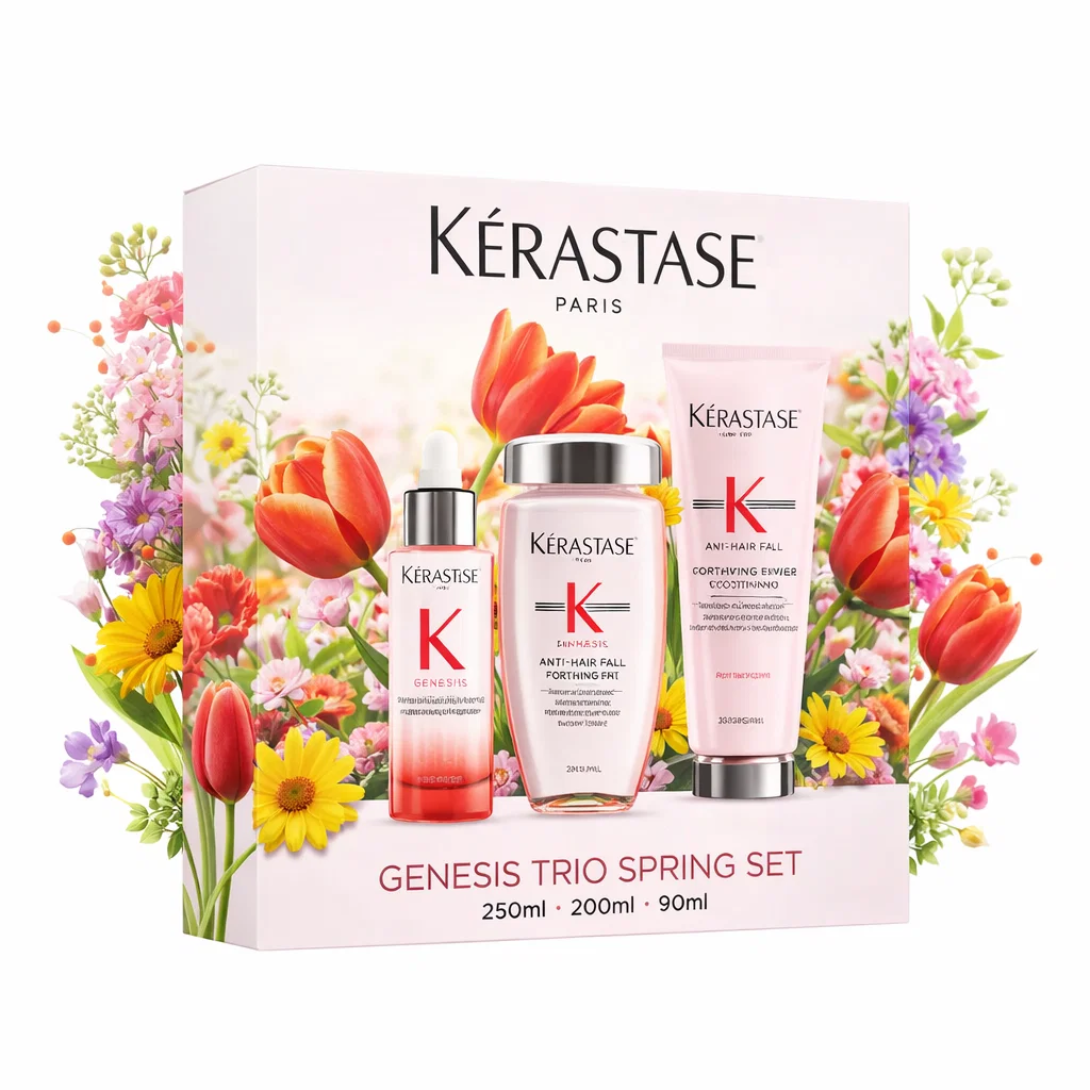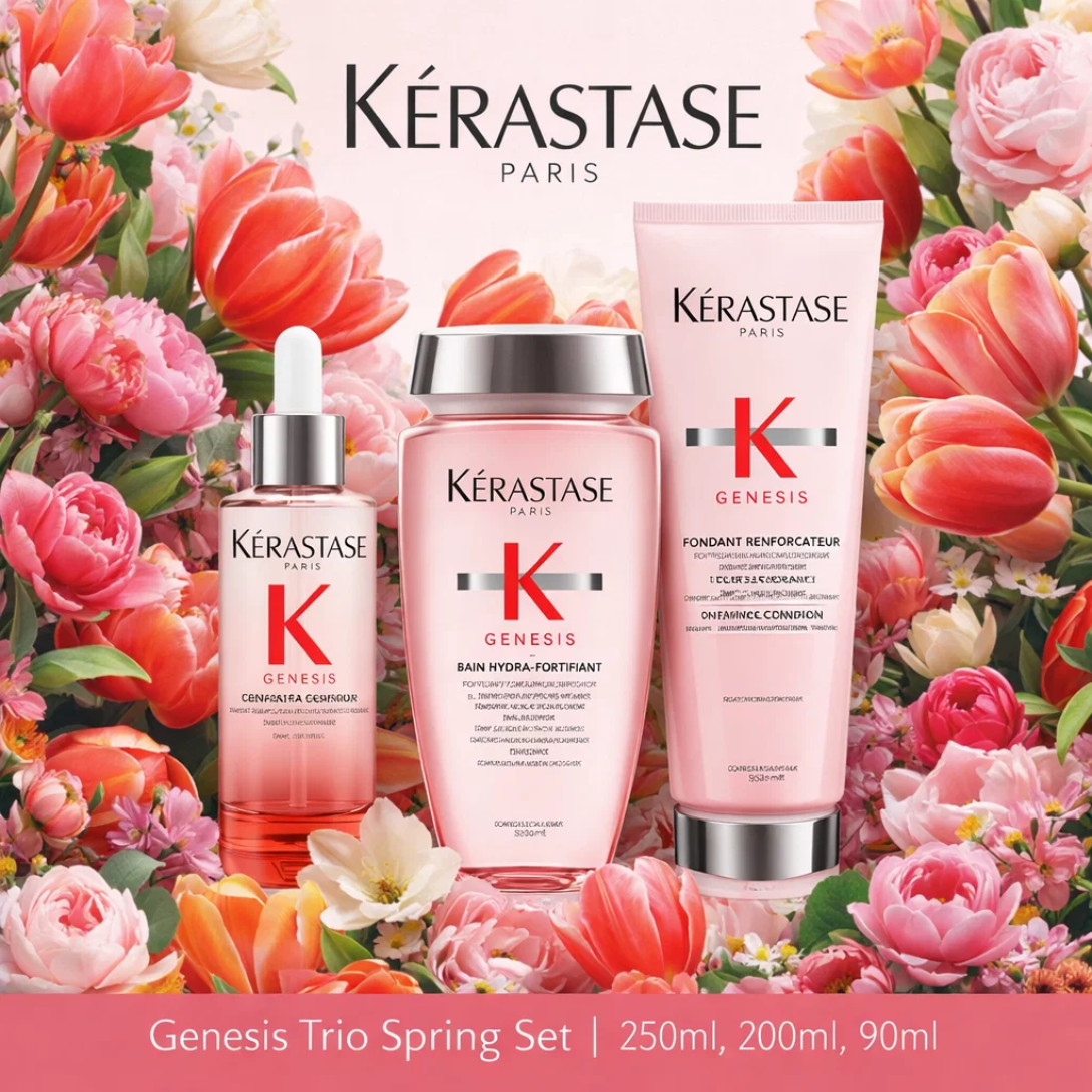 Le Kérastase Genesis Trio Spring Set est un coffret de soin capillaire premium conçu pour les cheveux fragilisés et sujets à la casse. Cette routine professionnelle associe un shampooing (250 ml), un après-shampooing (200 ml) et un sérum (90 ml) pour prendre soin des cheveux et du cuir chevelu.