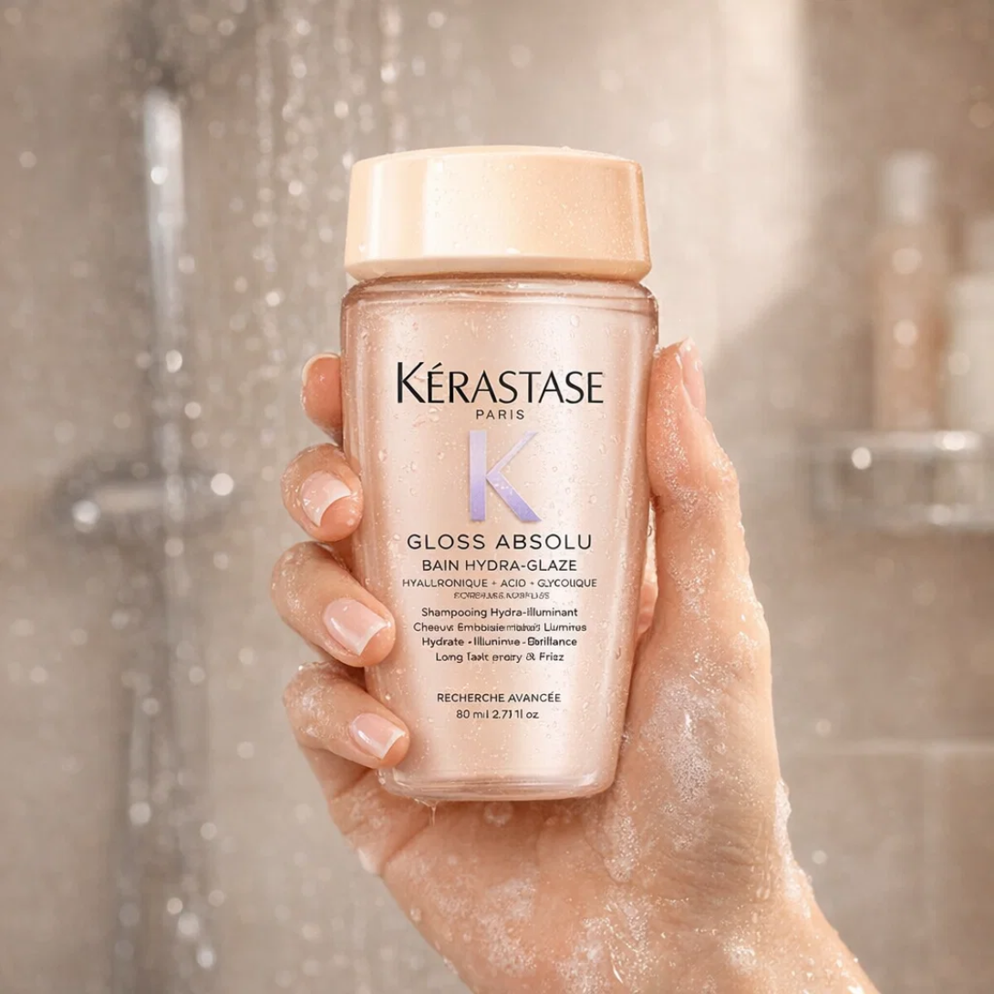 Le Bain Hydra-Glaze de la gamme Kérastase Gloss Absolu est un shampooing hydratant et illuminateur qui nettoie délicatement la fibre capillaire, lisse la surface et apporte une douceur immédiate. Format pratique, idéal pour tester ou emporter en voyage, adapté à tous types de cheveux en particulier ternes, secs ou manquant d éclat.