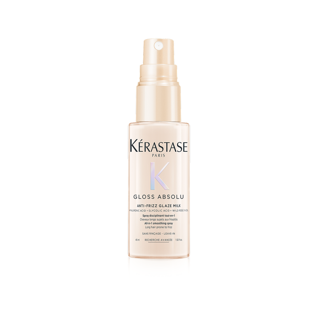 - Étape 3 : Appliquer le spray Anti-Frizz Glaze Milk sur cheveux essorés. Ne pas rincer.