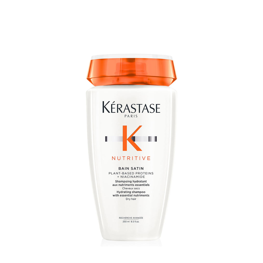 - Étape 1 : Appliquer Bain Satin sur cheveux mouillés, masser puis rincer.