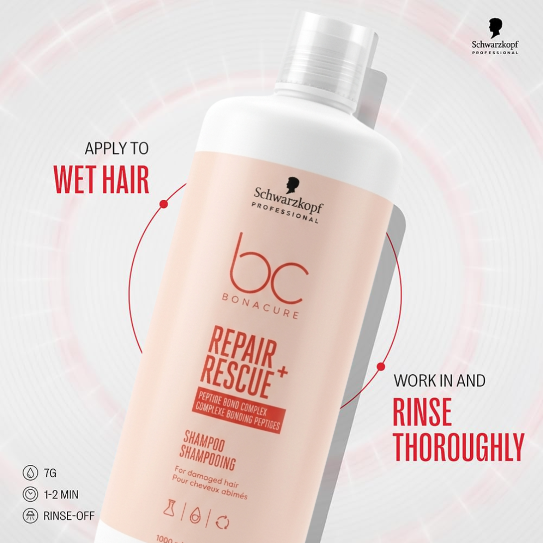 - Pour des résultats optimaux, utiliser avec l’après-shampooing BC Bonacure Repair Rescue ou un masque adapté.