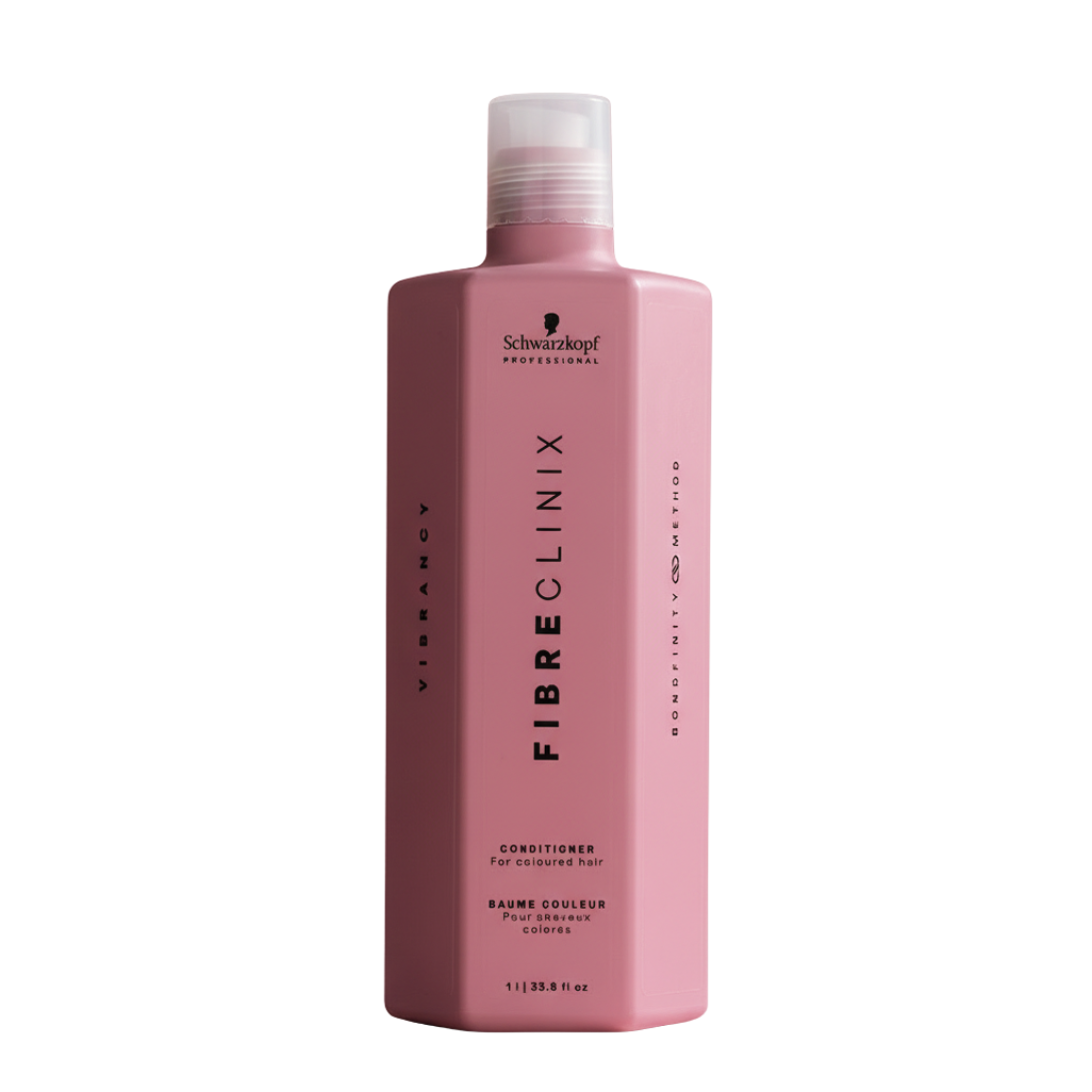 -Pour maintenir l'éclat de vos cheveux colorés, utilisez régulièrement l'après-shampooing Schwarzkopf Professional FIBRE CLINIX Vibrancy.
