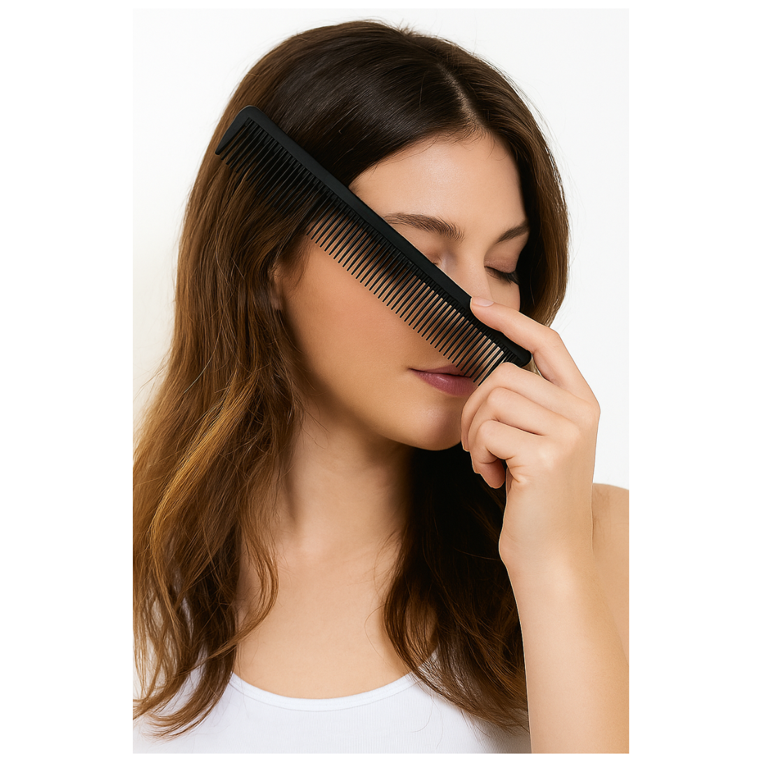 Hergestellt aus hitze- und chemikalienbeständigem Ebonit (Hartgummi), bietet dieser Kamm Salonqualität und höchsten Komfort, ideal für Friseure und Heimanwender.