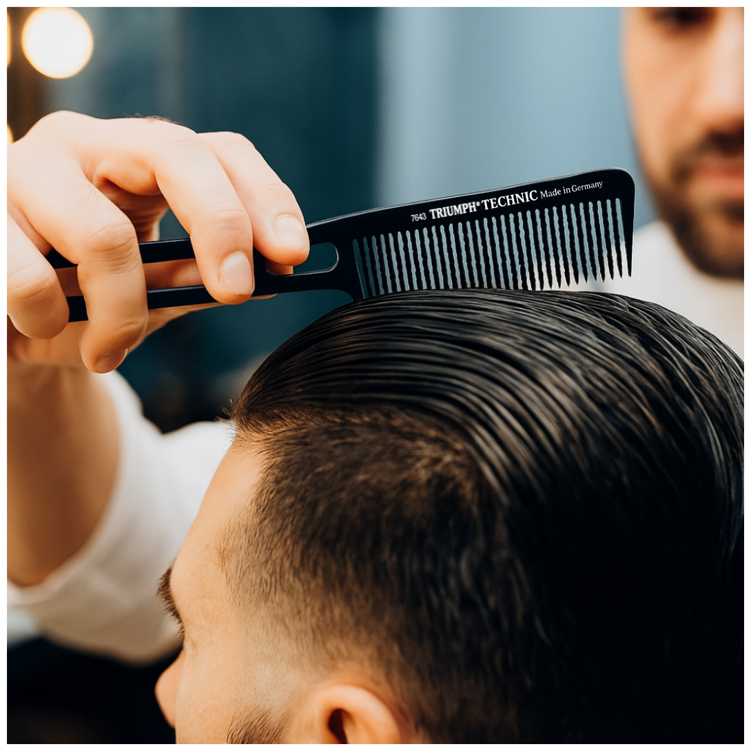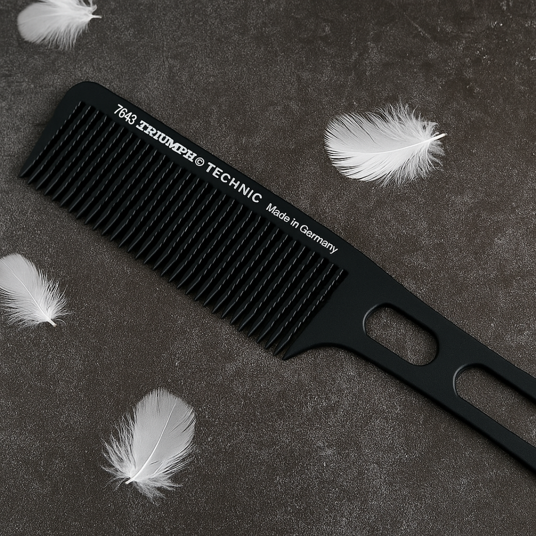 Die Länge und Form des Kamms sind ideal abgestimmt für exaktes Arbeiten mit Haarschneidemaschinen.