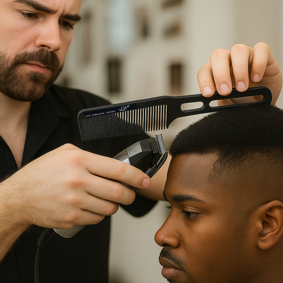 Der Clipper Kamm eignet sich optimal für Haarschnitte mit der Maschine, Übergänge und präzise Konturen.