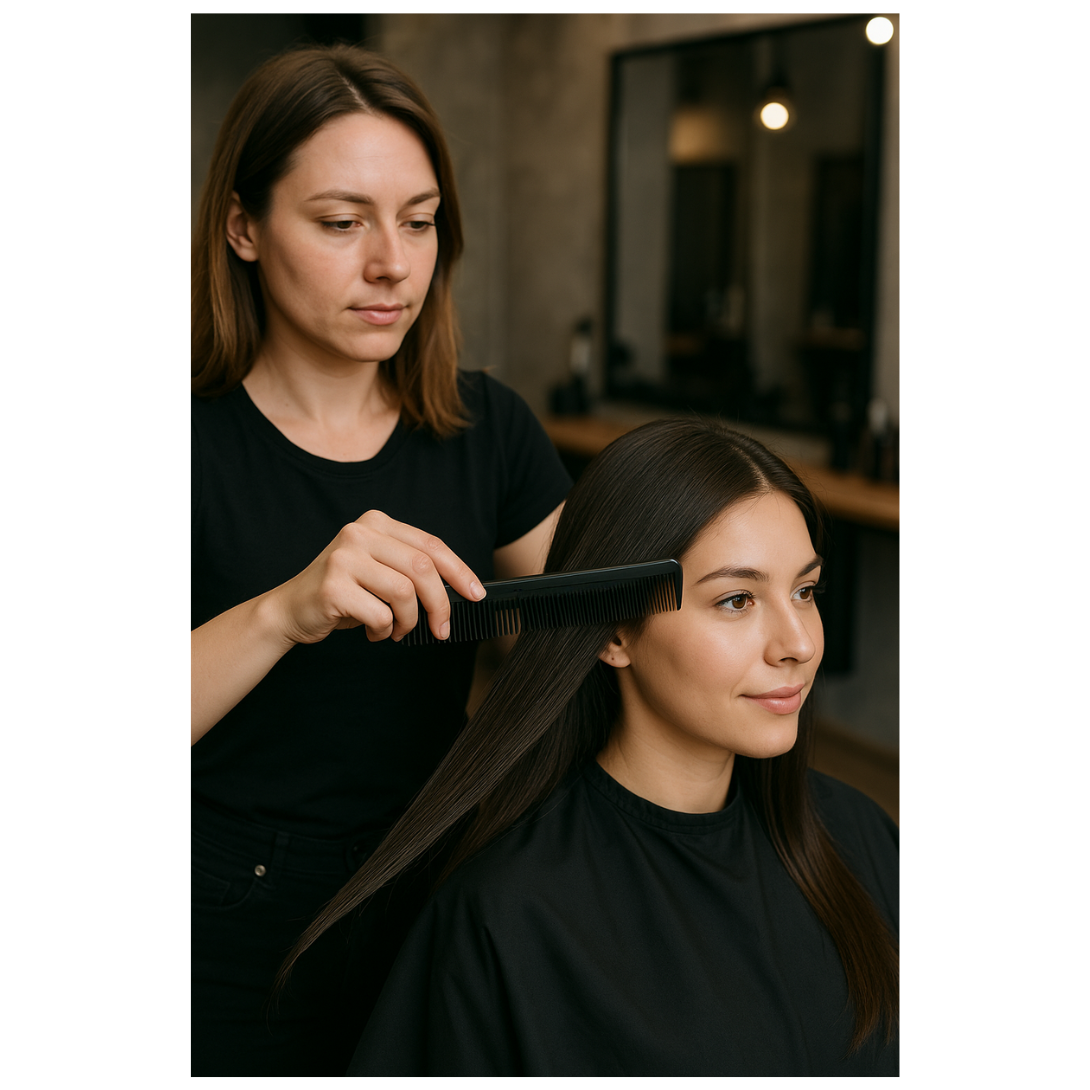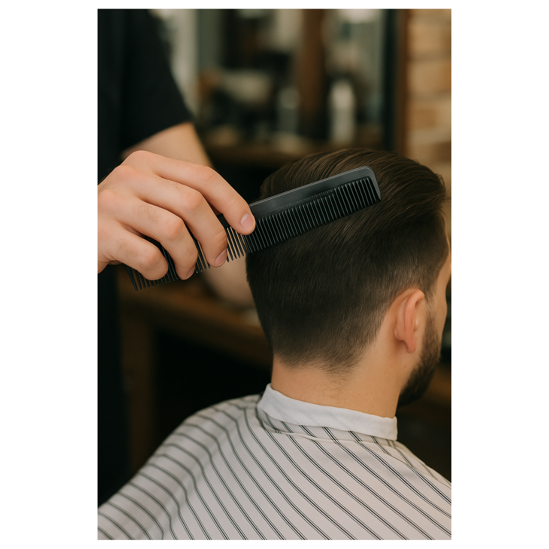 Ideal für Friseure und Stylisten, bietet er Vielseitigkeit bei Schnitt-über-Kamm-Techniken, Tapering und Konturen. Hitzebeständig, chemikalienresistent und langlebig für den täglichen Einsatz im Salon.