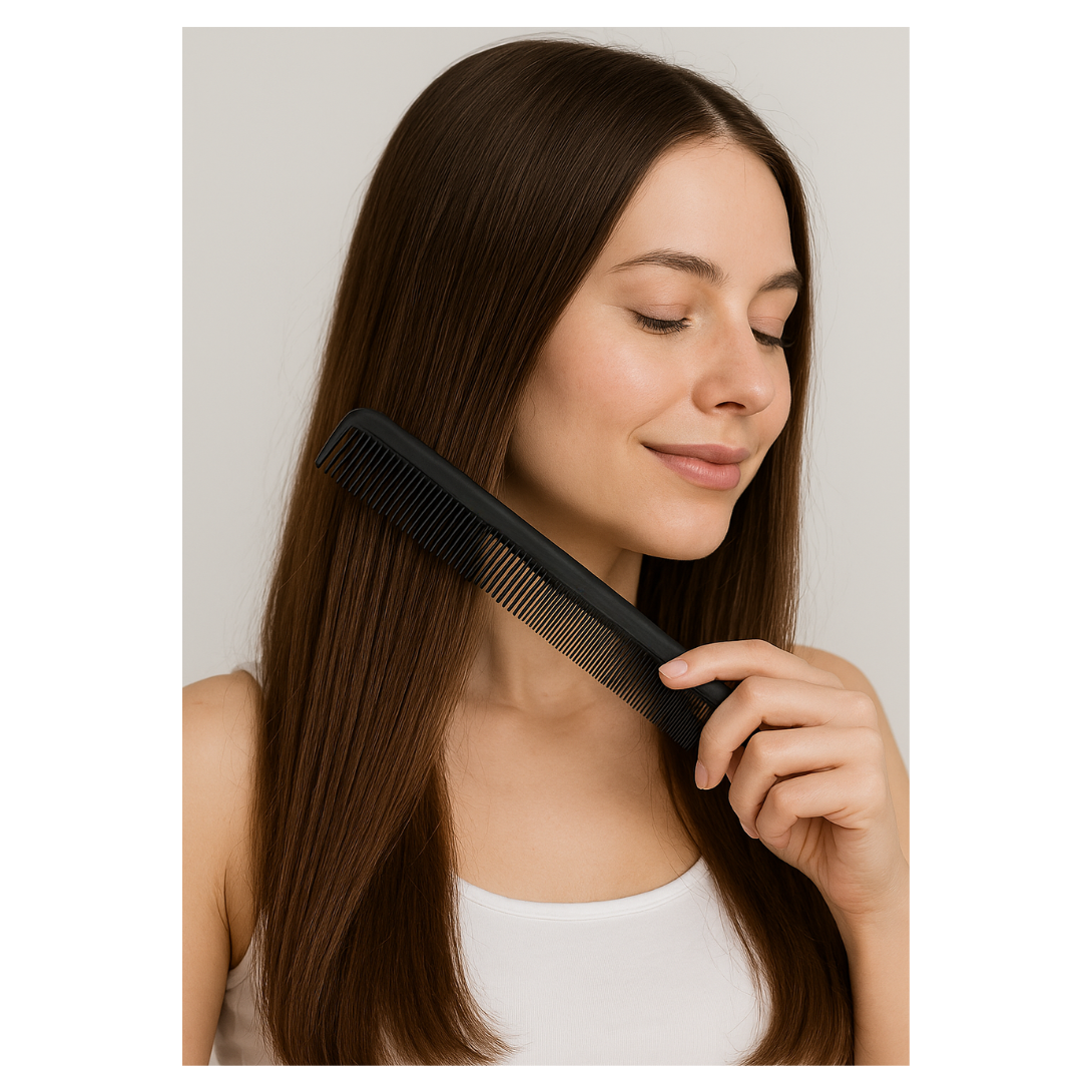 Realizzato in gomma dura (ebonite) resistente al calore e ai prodotti chimici, questo pettine è ideale sia per i parrucchieri che per l uso domestico. Il design ergonomico offre comfort e controllo durante un utilizzo prolungato.