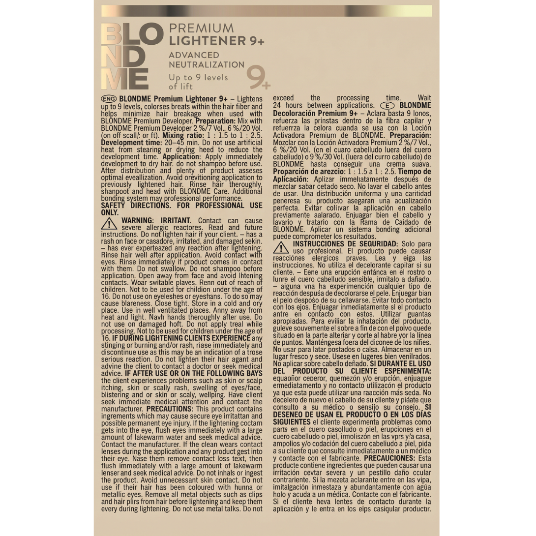Informazioni sul prodotto "Schwarzkopf Professional BLONDME Premium Lightener 9+ Decolorante"