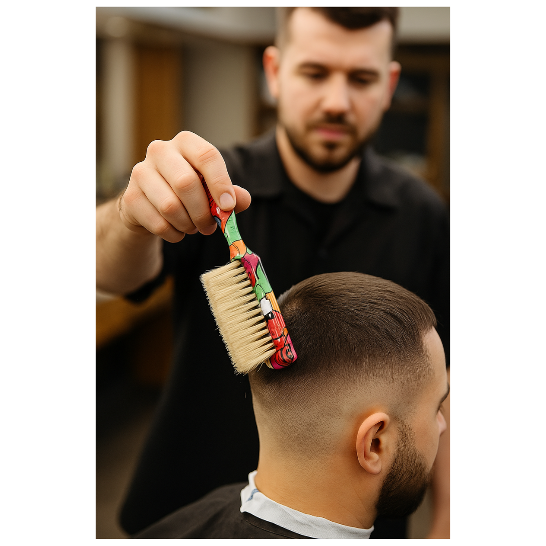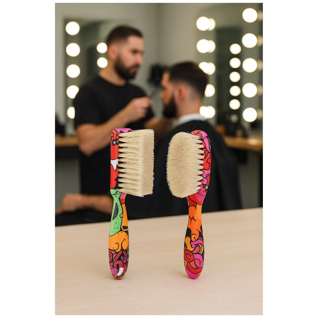 Die Jerbat 2-in-1 Barber-Bürste kombiniert innovative Funktionalität mit einem auffälligen Design. Dieses professionelle Tool vereint einen doppelseitigen Haar- und Bartkamm mit einer weichen Reinigungsbürste, um präzises Styling und sauberes Arbeiten zu ermöglichen. Ideal für Barbiere, Friseursalons und den täglichen Gebrauch zu Hause. Die Naturborsten entfernen sanft Schnittreste, während der ergonomische Griff eine komfortable Handhabung garantiert.