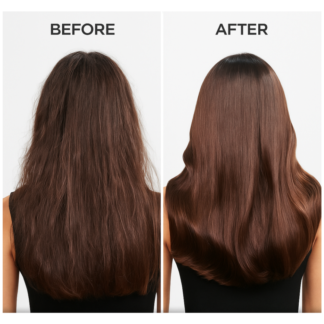 • Hyaluronsäure: Spendet langanhaltende Feuchtigkeit und polstert die Haarfaser auf