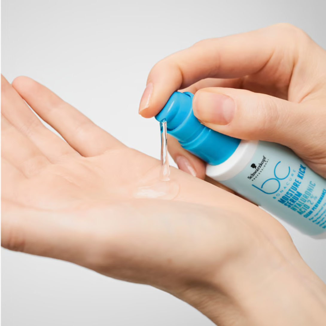Pflegen Sie Ihr Haar mit dem Schwarzkopf Professional BC Bonacure Moisture Kick Hyaluronic Serum für tief hydratisiertes, glänzendes und geschmeidiges Haar voller Lebendigkeit.