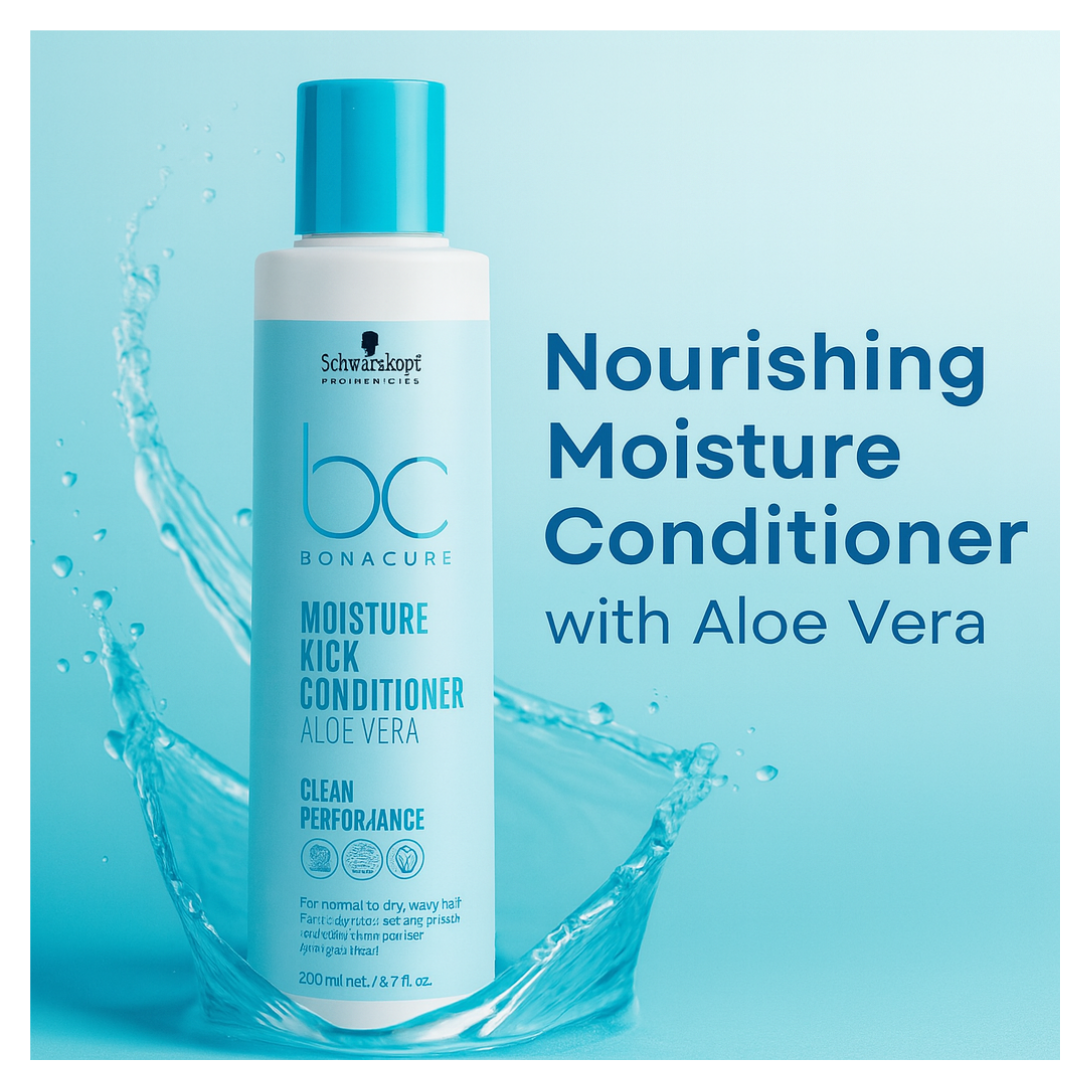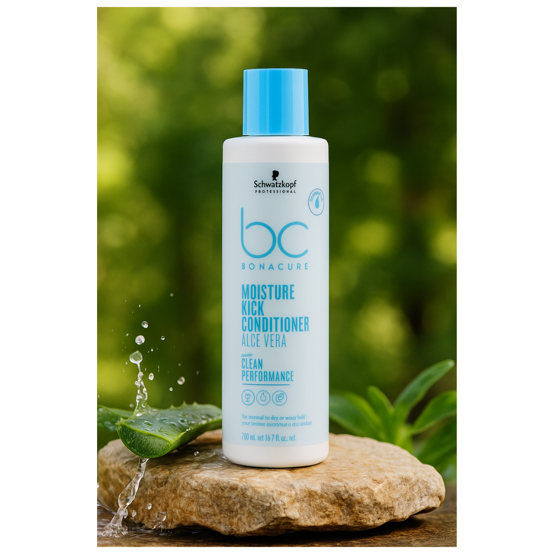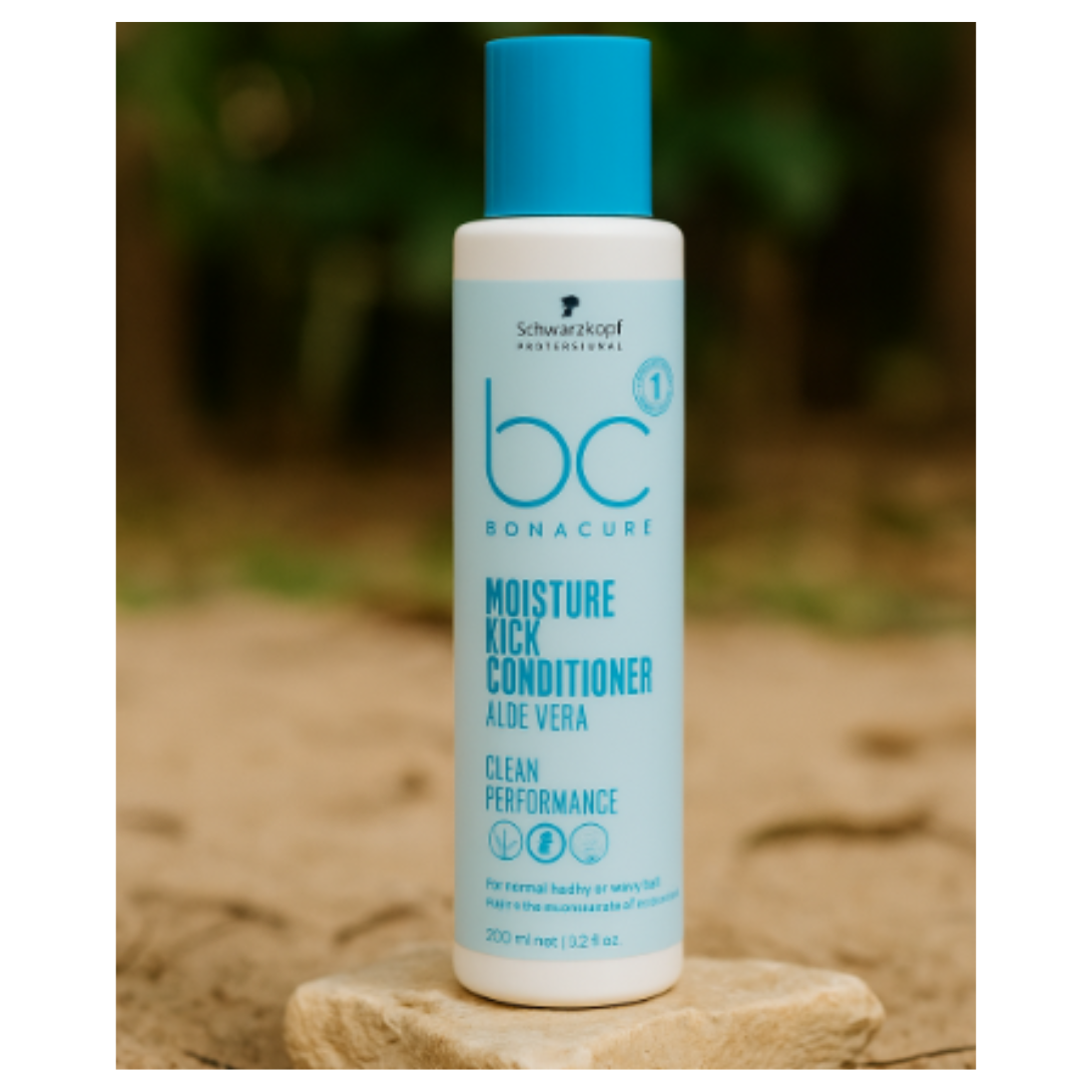 Entdecken Sie die Schwarzkopf Professional BC Bonacure Moisture Kick Spülung 200ml, eine leichte, feuchtigkeitsspendende Pflegespülung mit Aloe Vera und dem fortschrittlichen Moisture Complex. Entwickelt für normales bis trockenes, gewelltes oder lockiges Haar, entwirrt diese vegane Formel sanft, stellt die Elastizität wieder her und spendet bis zu 72 Stunden lang Feuchtigkeit für geschmeidiges, glänzendes und leicht frisierbares Haar.