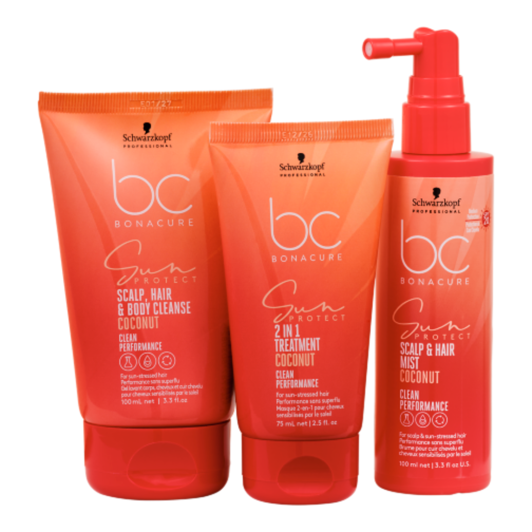 Die Schwarzkopf Professional BC Sun Protect Bag ist ein komplettes Pflegeset für sonnenbeanspruchtes Haar. Ideal für den Sommer, am Strand, im Schwimmbad oder im Urlaub, vereint es drei essentielle Produkte der BC Sun Protect Serie, um Haar und Kopfhaut zu reinigen, zu schützen und zu pflegen.